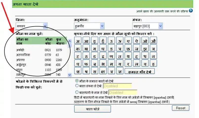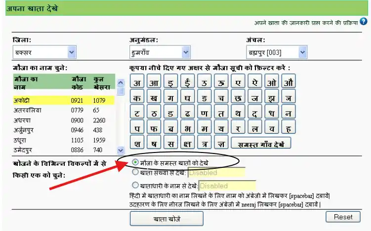 • मौजा के समस्त खातों को देखें सेलेक्ट करें
