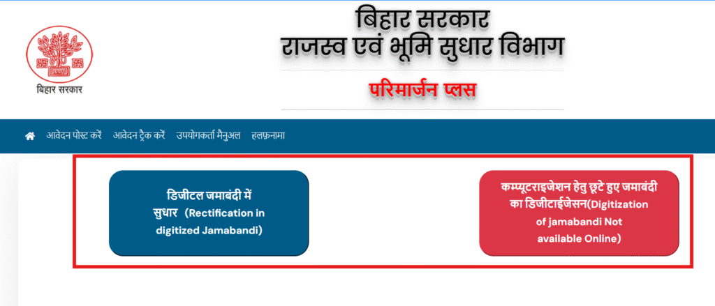 बिहार में परिमार्जन प्लस (Parimarjan Plus) के माध्यम से आप अपनी डिजिटल जमाबंदी में सुधार कर सकते हैं या पुरानी छूटी हुई जमाबंदी को ऑनलाइन पोर्टल पर चढ़वा सकते हैं। यह पूरी प्रक्रिया ऑनलाइन है।